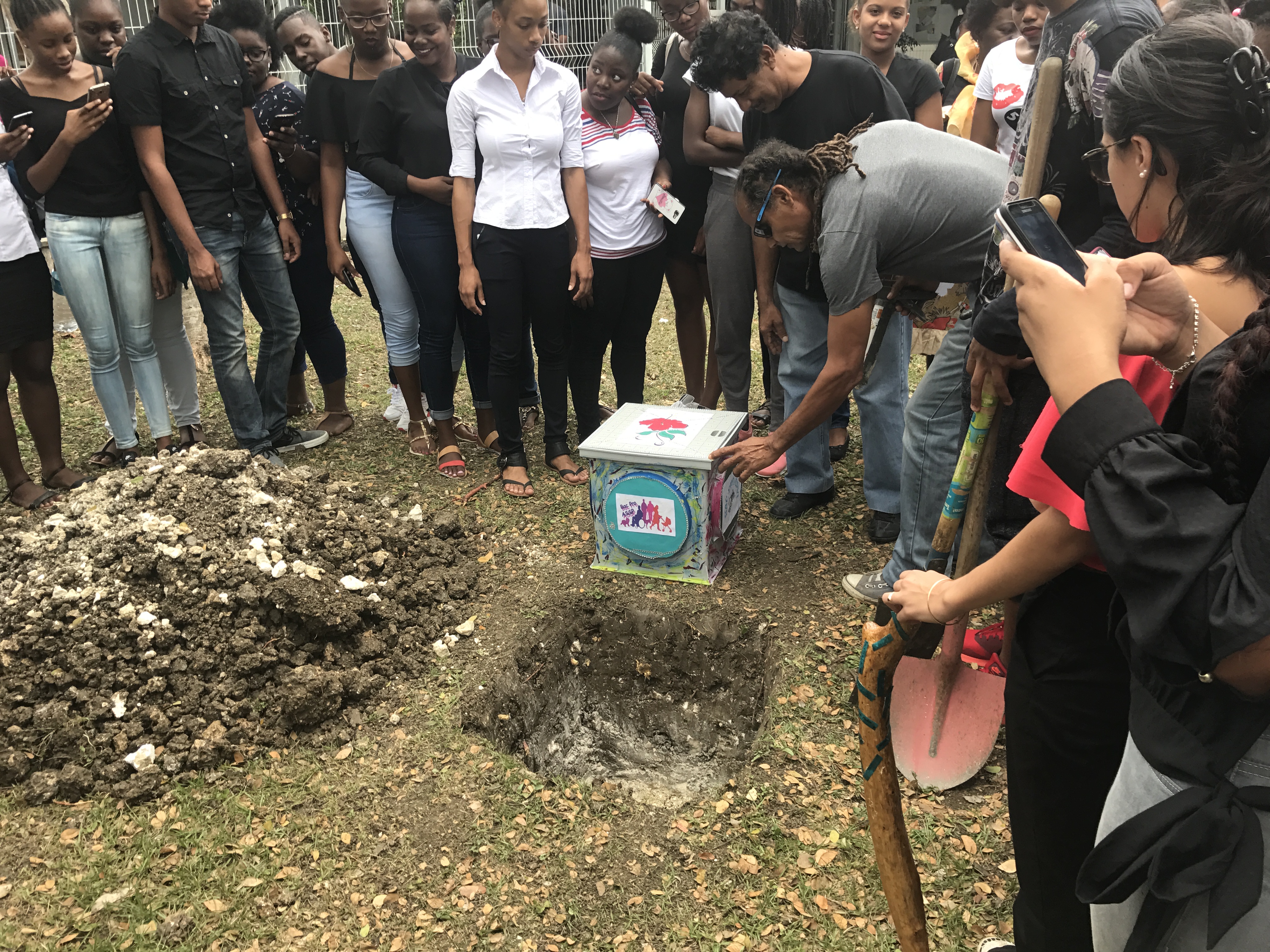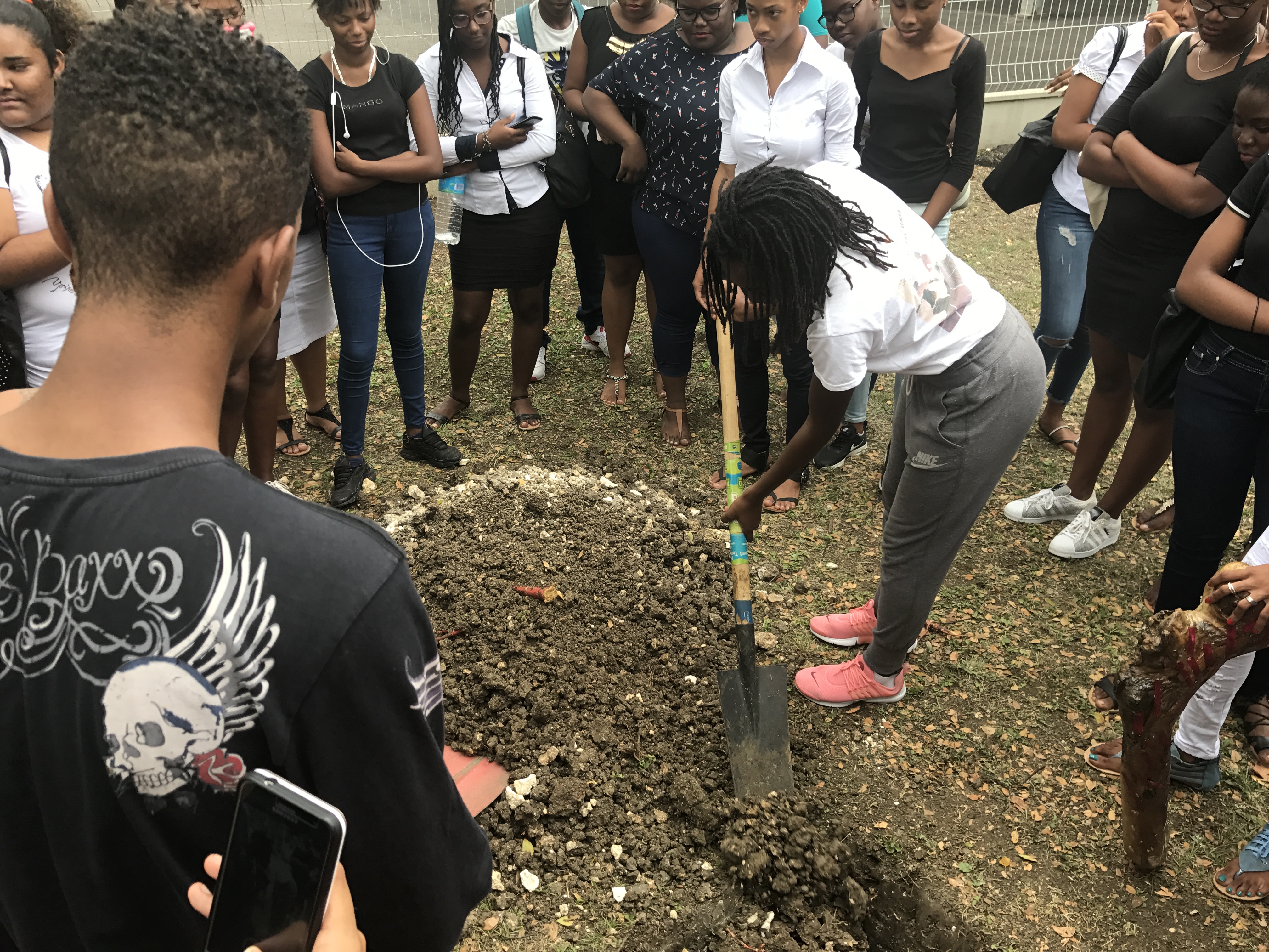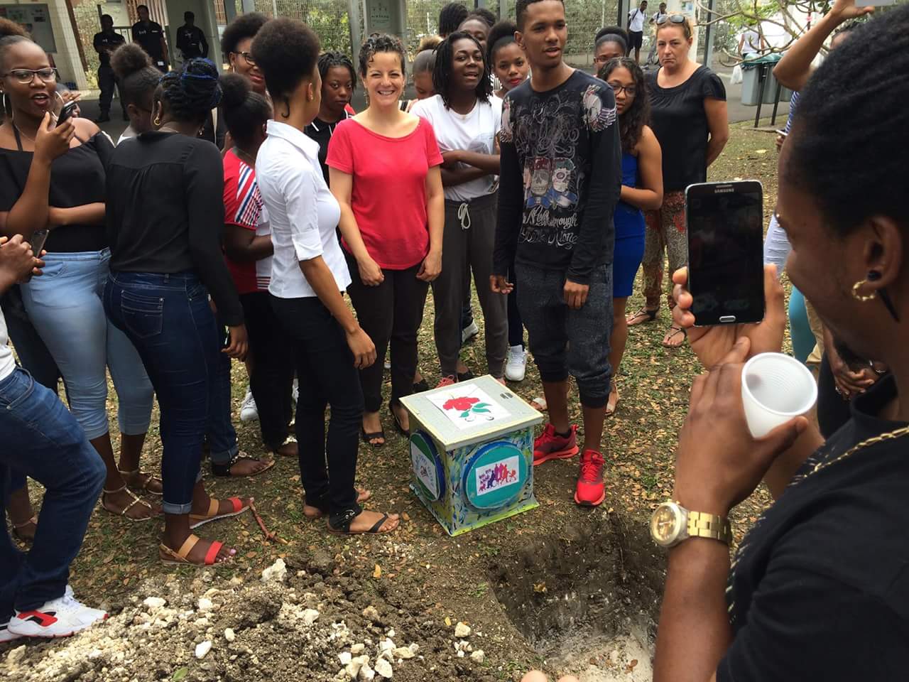 Rendez-vous dans sept ans! Ça peut paraître lointain, surtout pour de jeunes personnes. Mais, vendredi 7 avril 2017 , au lycée Nord Grande-Terre, 57 élèves de deux classes, la 1re ASSPS ont enterrés un “time capsule” . A l’intérieur de cette boîte ils ont placés toutes sortes d’objets du quotidien que leur successeur découvriront d’ici 7 bonnes années .